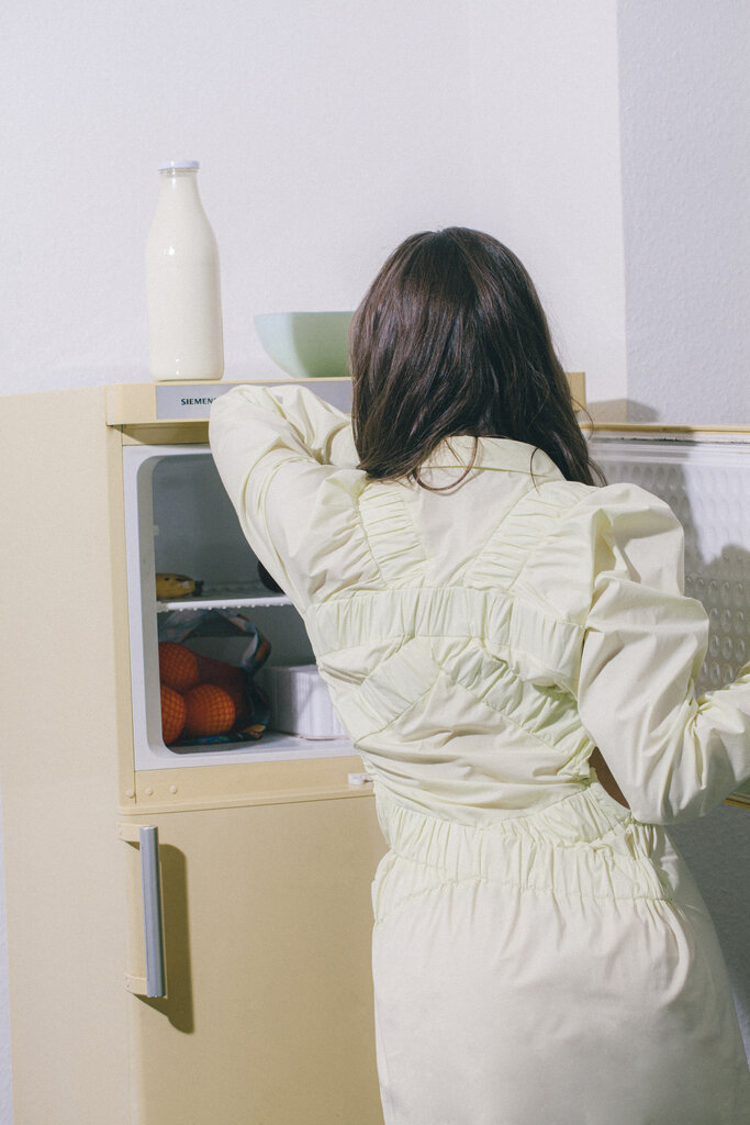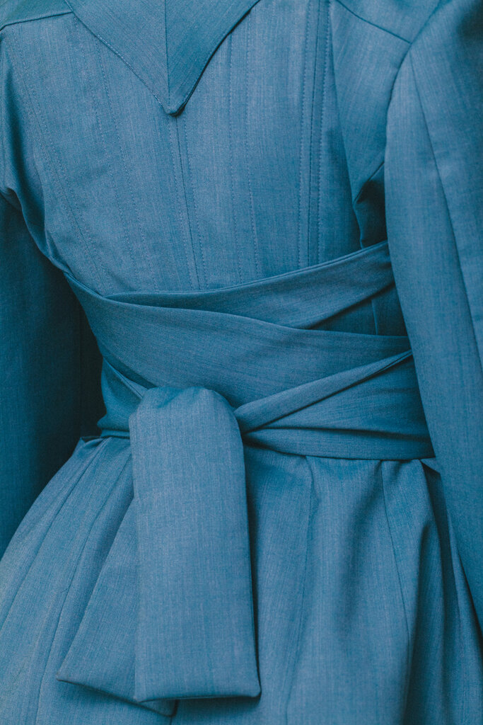 Ik heb als stagiaire meegewerkt aan de collecties van Ronald van der Kemp en Duran Lantink. Bij beide ontwerpers staan duurzaamheid en hergebruik hoog in het vaandel en dat vraagt steeds om creatieve oplossingen in de verwerking van materialen.