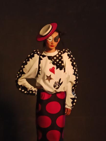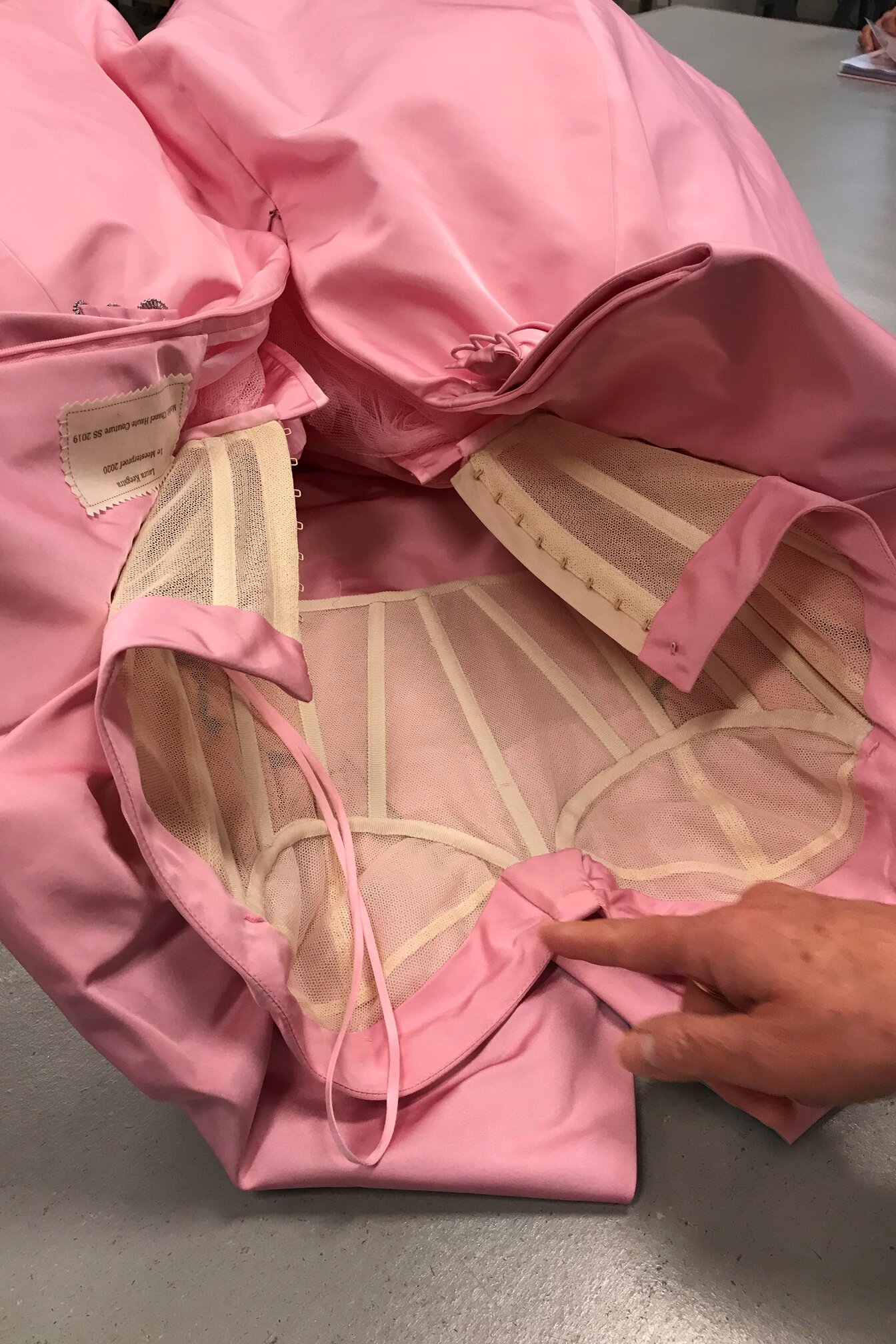 Ik heb mijn opleiding afgerond met als Meesterproef een replica van een Chanel japon uit de Haute Couture collectie SS’19. De jurk valt op door de ballonrok en het gedrapeerde bovenlijfje. Een tulle binnenkorset houdt de jurk op z’n plek. Het volume in de rok ontstaat door een ingebouwde petticoat van tulle. De jurk is gemaakt van zijden Radzimir. Een prachtige stof die het midden houdt tussen taft en duchesse.