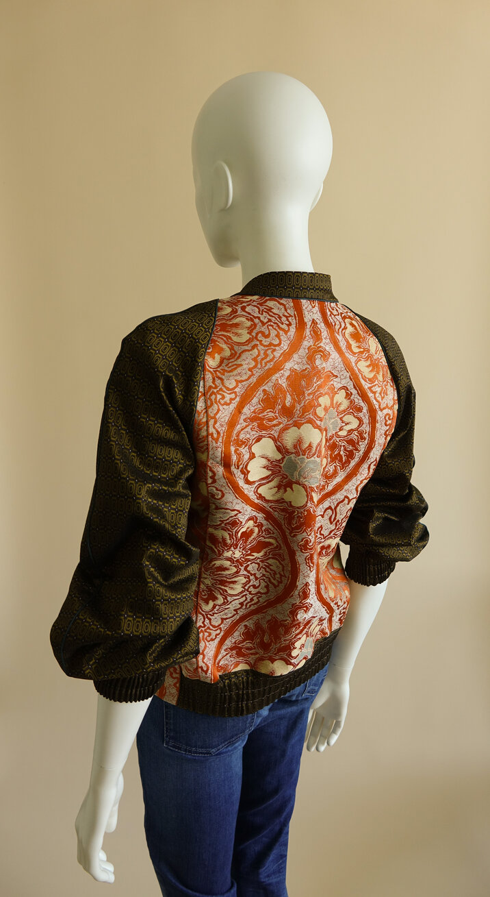 Soms heb je een bijzonder stuk textiel dat je inspireert. Een Japanse Obi bijvoorbeeld. Door de mooiste delen van de Obi te gebruiken en die te combineren met andere stoffen, ontstaat er iets nieuws.